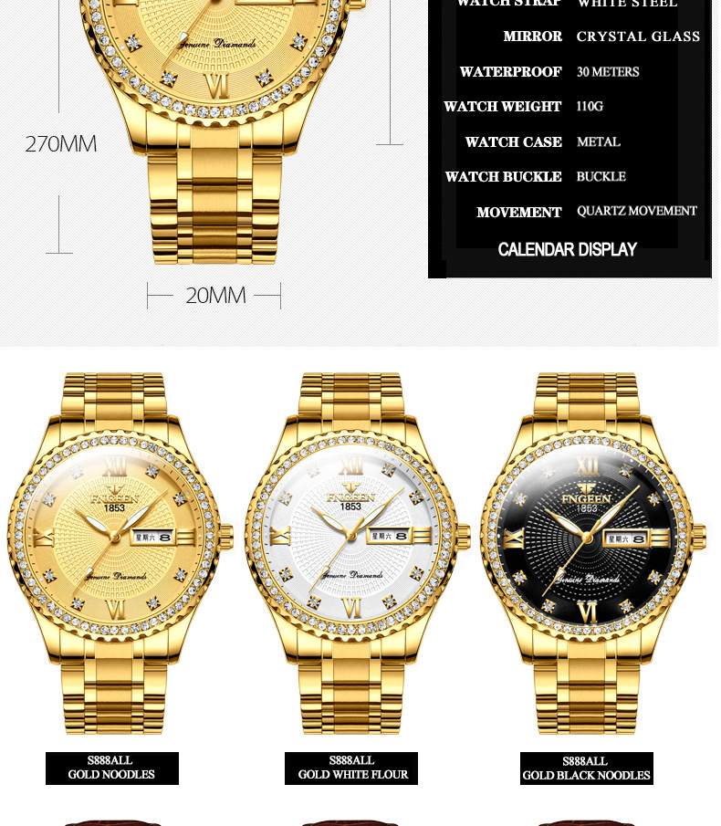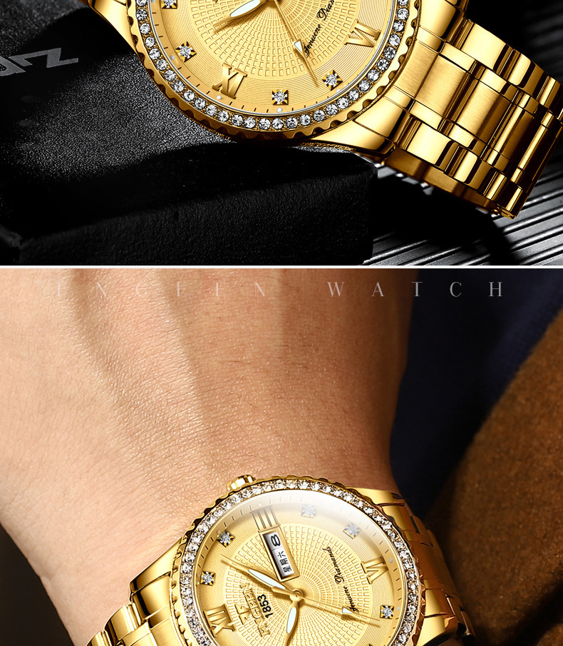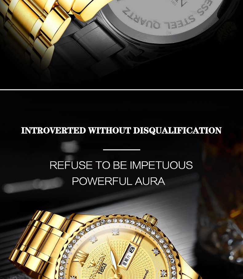 Watch Men's Luxury Gold Non-mechanical Stainless Steel Luminous
