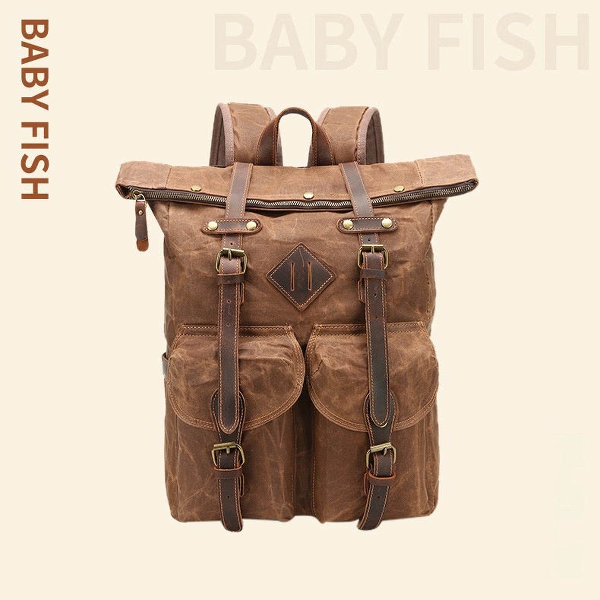 Retro Waterproof Crazy Horse Leather Canvas Large Capacity Backpack